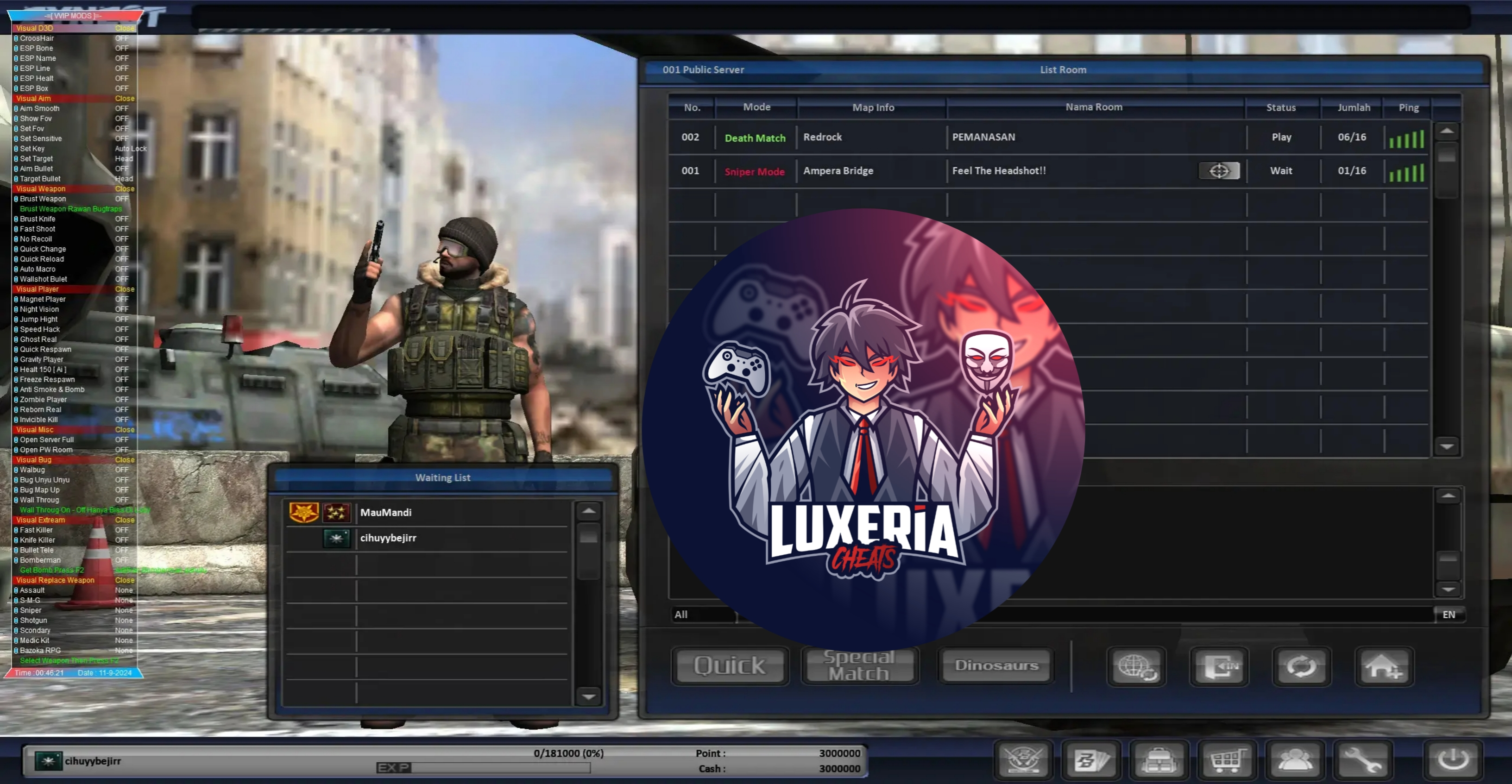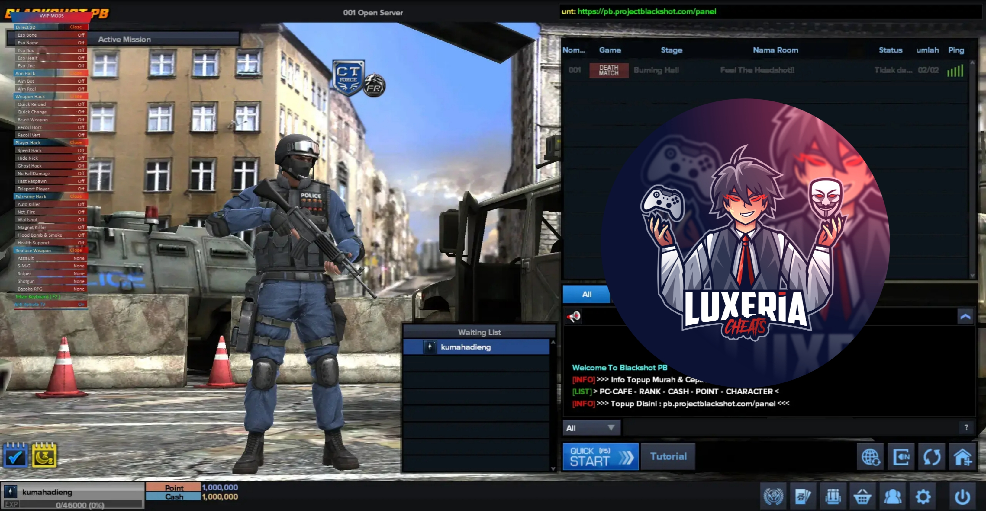 Kami menyediakan cheat Point Blank Private Server dengan beragam fitur yang dirancang khusus untuk menghadirkan kembali sensasi permainan legendaris di masa kejayaannya.